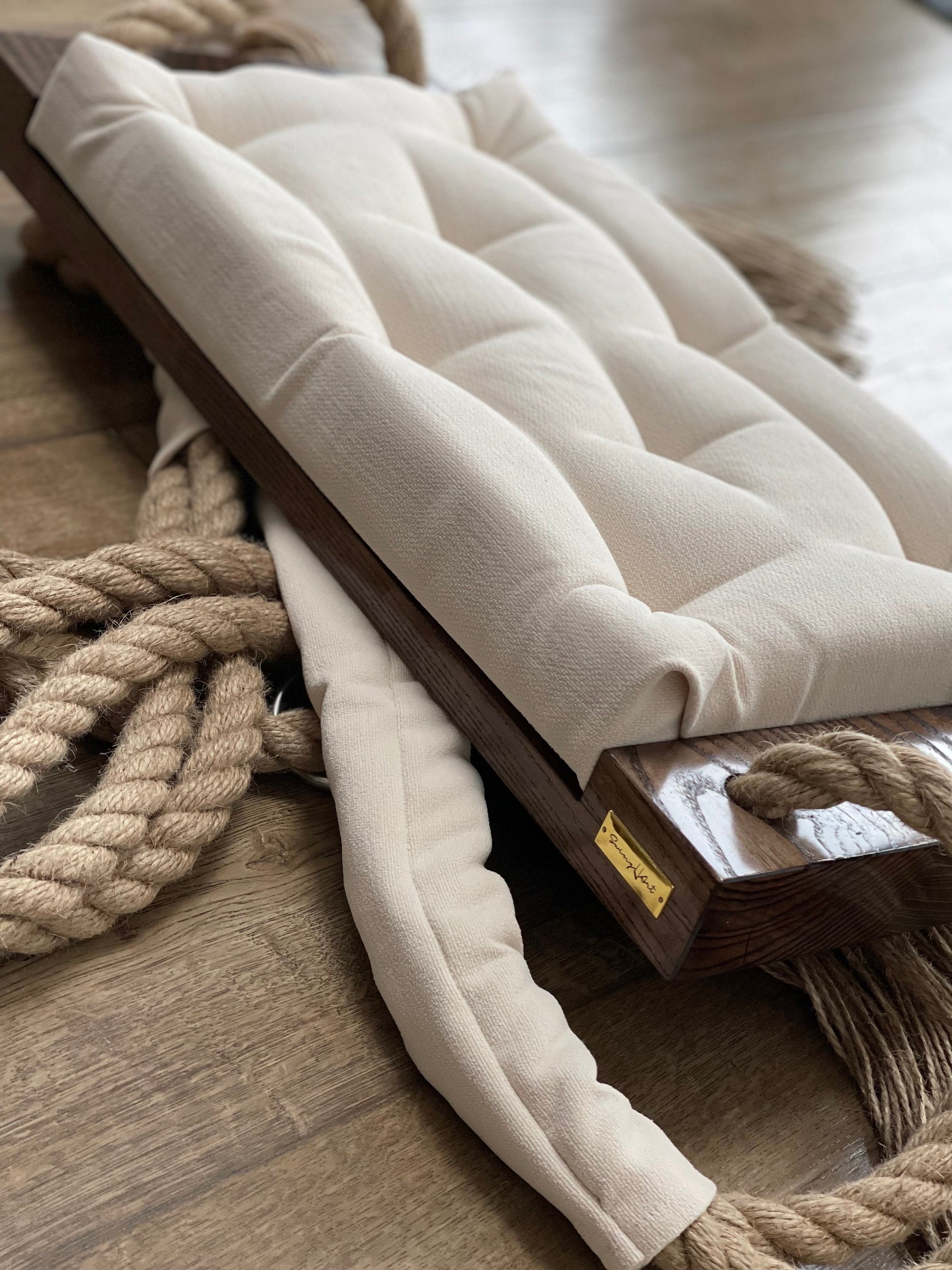 COMMERCIAL SPACES: our swings can be use in commercial spaces because we use fire retardant, water repellent, easy water cleaning, pets friendly and eco friendly fabrics. The swing seat is filled with special foam, thanks to which it is elastic, flexible and does not deform thanks to this can look amazing for ages.