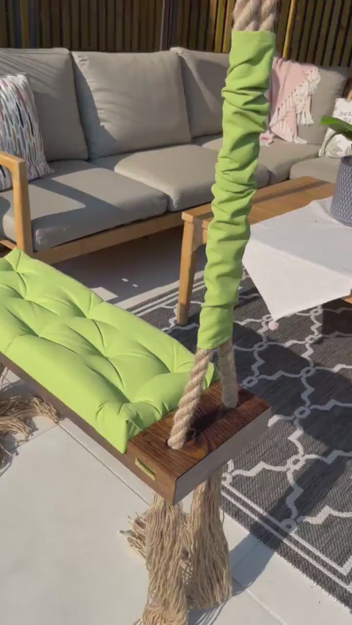 Unique, Luxury Swing for Adult and Kids. Attention for details, quilted soft seat covered by high quality easy to clean velvet.